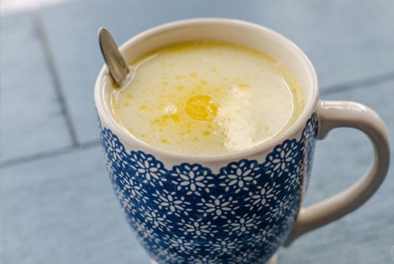 2. Přidejte ostatní ingredience: Do teplého mléka přidejte máslo (nebo kokosový olej), kurkumu a med. Důkladně promíchejte, aby se med rozpustil.
