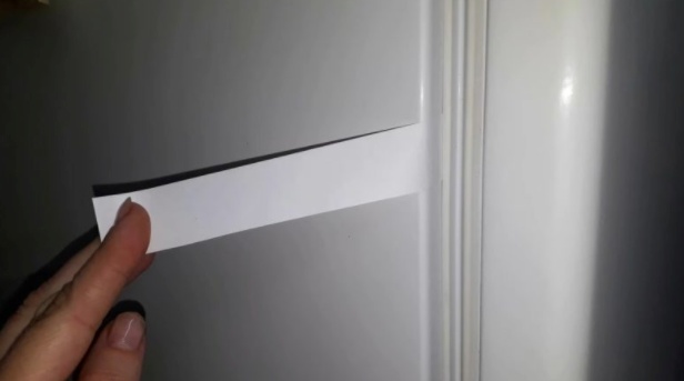 Zatvorte dvierka spolu s prúžkom papiera. Potom ho skúste vybrať. Ak to pôjde ľahko, dvere nie sú vzduchotesné – preto sa ľad tak rýchlo hromadí. Je potrebné zavolať odborníka a vymeniť tesnenie.