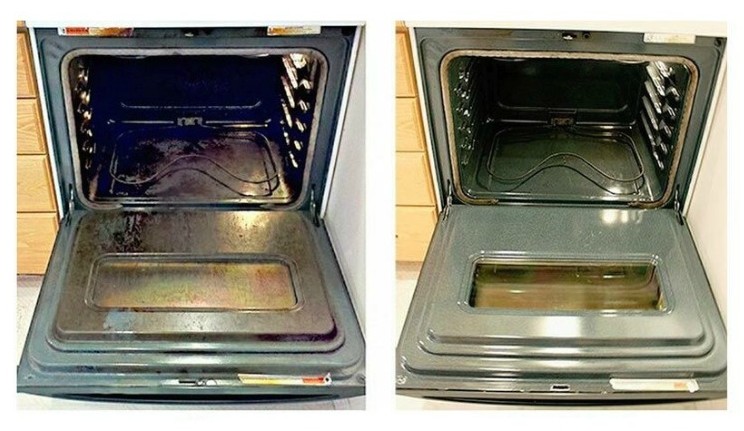 Trochu mýdla na praní nastrouhejte do horké vody, míchejte, dokud se nerozpustí, nalijte do pánve a vložte do trouby. Zapněte 120 stupňů a zahřívejte 30 minut . Neotvíráme dveře. Pak vezměte kuchyňskou žínku a umyjte vše uvnitř – špína se snadno odlepí. Mýdlo na prádlo je možné nahradit saponátem.