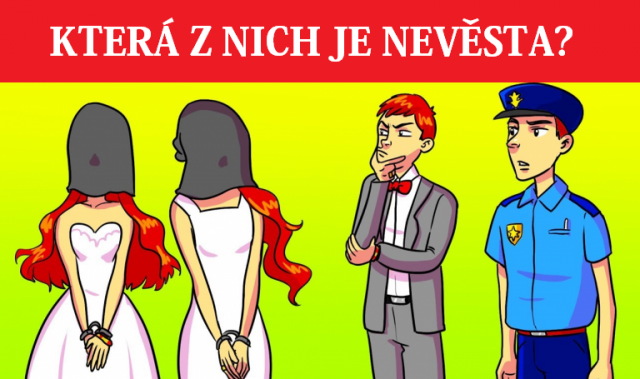 Na obrázku můžete vidět dvě unesené ženy ve svatebních šatech a ženicha. Jen jedna z žen je však skutečná nevěsta, kterou si chce její milovaný přítel vzít. Dokážete vyřešit, která ze dvou nevěst je skutečná nevěsta? Která nevěsta skutečně patří k budoucímu manželovi?